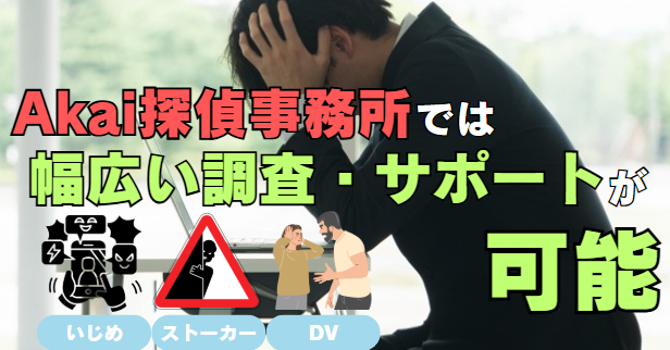 また、万が一犯罪につながる恐れがある場合は、法令知識に精通したスタッフと専門家ネットワークを活用し、迅速かつ的確に調査を進められます。自力での対処が難しい問題も、Akai探偵事務所にお任せください。市原市の皆様が安心して日常を送れるよう、さまざまなリスクに対応した調査力とノウハウでお力になります。