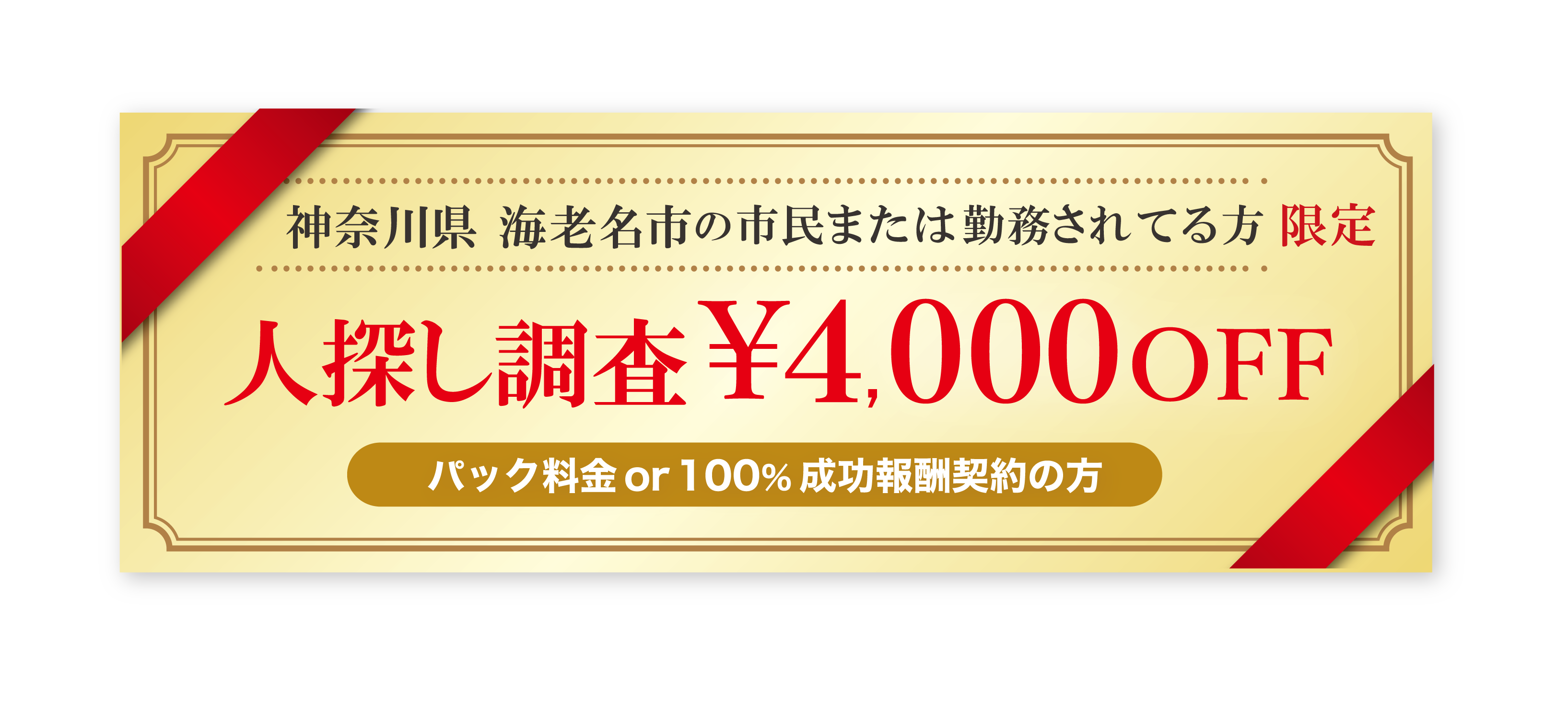 上記の海老名市の探偵クーポン券は、繁忙状態により中止する事がありますので、お早めにご活用ください。