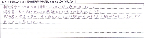 事前調査をしてからの調査だったので安心感がありました。