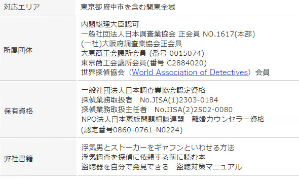 | 探偵業届出番号 | 全営業所の概要に記載 |